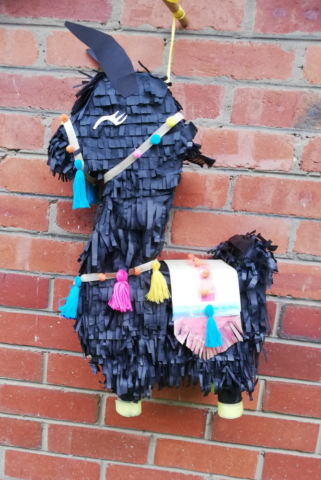 black llama pinataBlack Llama Pinata With Colourful Tassels & Stick